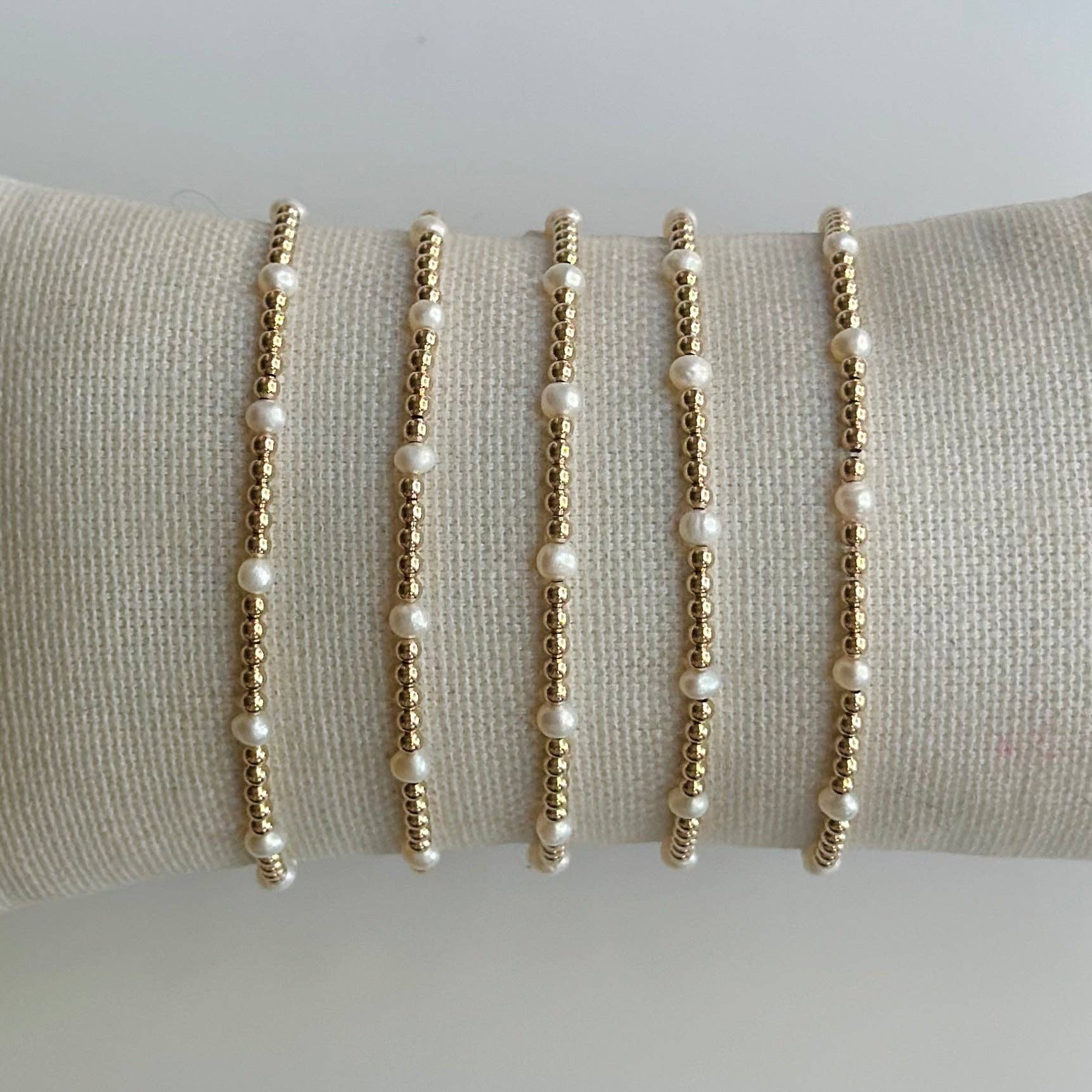 * Who doesn't need more grace? This beautiful bracelet symbolizes grace given and received! * Non tarnishing, 14k gold filled beaded bracelet * 2.5mm beads with 4mm or pearl beads * Stretchy and fits wrist comfortably up to 7" * Worry free wear!
